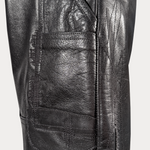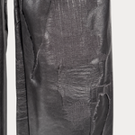 This cowskin leather is heavy and structured with a baggy fit. Over 40 hours have been dedicated to the craft of this pant through meticulous stitching and finishing.